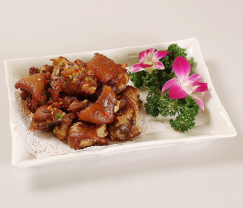 (6)待豬蹄酥爛時(shí)加鹽,最后大火收汁時(shí)撒上蔥花即可。