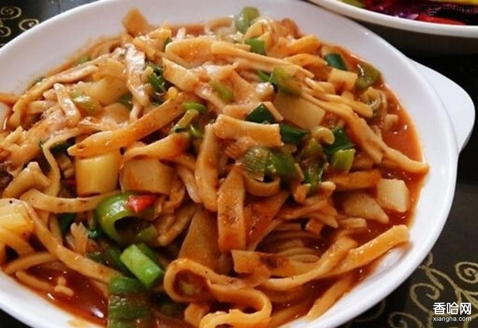 炒糊餑是一道西北地方著名小吃,流行于寧夏銀川、吳忠等地。特點是制作方便,配菜豐富,香、辣,嚼起來很有口感?!昂G”是一種用烙餅切成餅條的俗稱,又稱“糊餑子”。而所謂炒糊餑,其實通俗的說,就是將這種烙餅切成條狀,加以配料炒制而成的一道主食。