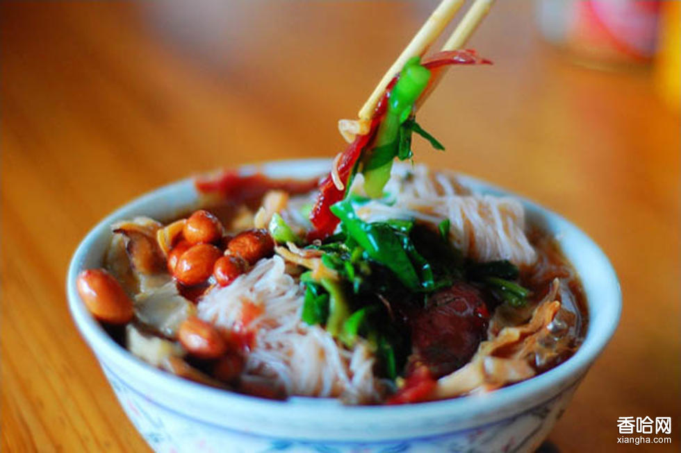 1、大米泡軟磨漿制成凈粉條,方法與“海南粉“略同。