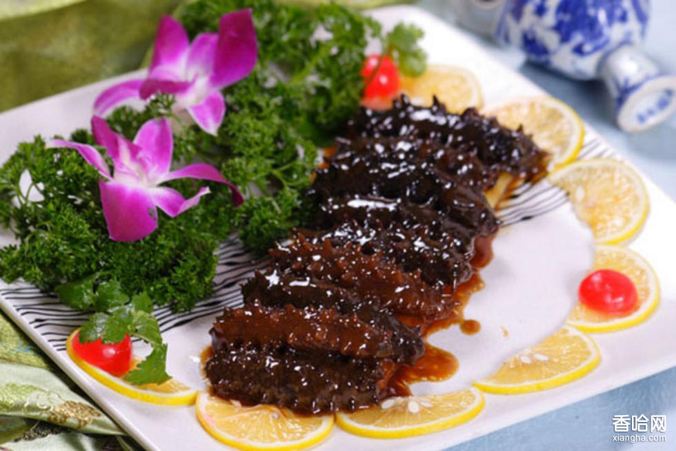 紅燒梅花參的主料為水發(fā)梅花參,主要配料有油菜和百靈菇等。把泡發(fā)后的梅花參從中間切成兩半,用開(kāi)水燙透,然后將水控凈。經(jīng)大廚烹飪,色澤紅亮,再配上新鮮的百靈菇,味道嫩滑鮮甜。裝盤(pán)時(shí),在盤(pán)中擺入一圈已經(jīng)烹好的油菜。翠綠的油菜配上紅亮的梅花參,一盤(pán)嬌艷欲滴的紅燒梅花參就呈現(xiàn)在你的面前了。嘗一口,味道醇厚、鮮美,具有滋陰補(bǔ)腎,增強(qiáng)機(jī)體免疫力之功效。據(jù)介紹,梅花參又稱(chēng)“鳳梨參”、“?;▍ⅰ钡?,是三亞三絕之一,主要產(chǎn)自南海諸島海域,因其鮮活的時(shí)候,橙色的背部生滿(mǎn)了梅花瓣?duì)畹娜獯潭妹?/p> [!--empirenews.page--]