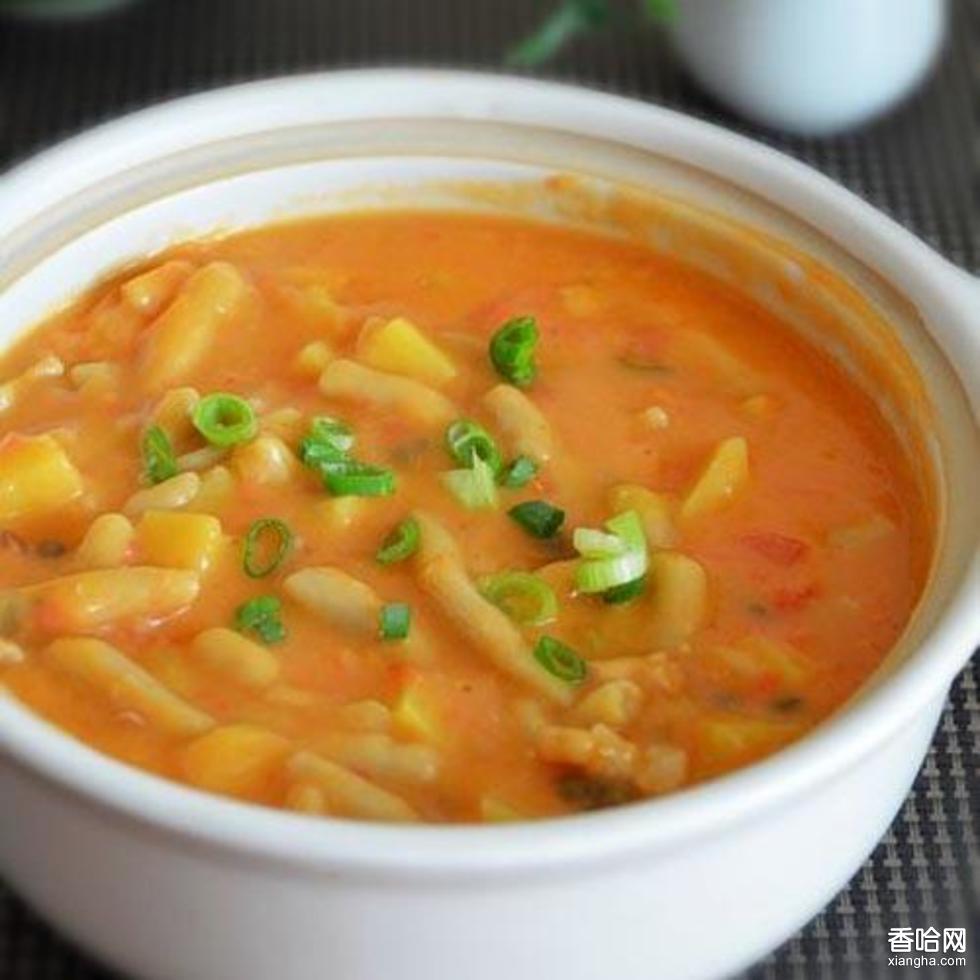 二.制作過程:1.莜面粉加水和成面團(tuán),用手搓成兩端細(xì)中間粗白勺橄欖形(北方稱魚魚),用水煮熟撈出,過冷水后待用.2.豬肉切小片狀;豆角切丁;海帶切絲;土豆切筷子條形;西紅柿切大丁;粉條用水泡發(fā).3.燒鍋放油,放入肉片炒散,放入生姜片和蒜片炒出味,放入鹽和醬油炒肉片上色,放入其余配料略炒后,放入適量水煮開,再放入魚魚同煮,待水開時放入鹽﹑醬油﹑陳醋﹑白芝麻,味精調(diào)味,裝入大碗中,表面撒上香菜段即可.