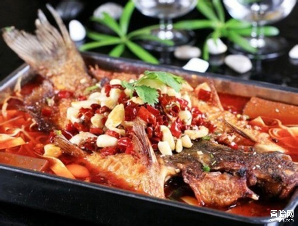 風(fēng)味烤魚為川菜,也是銀川當(dāng)?shù)責(zé)衢T特色菜之一??谖敦S富多變,魚肉嫩滑。