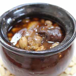 7、然后轉小火慢熬約3小時即成,最好用油篩把面上的油撈掉,以免太油膩。