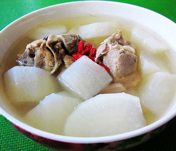 白蘿卜豬骨湯,清爽溫和,適合各年齡段人群。外觀上,不油不膩,湯色不厚不重,更適合當(dāng)今從事久坐或者常在外應(yīng)酬的人士。當(dāng)然,這道菜也非常適合女士食用,蘿卜中含有較多的纖維,富含水分,宜于保健美容。做法上,食料搭配簡單。下面我來看一下白蘿卜豬骨湯都有哪些功效吧。