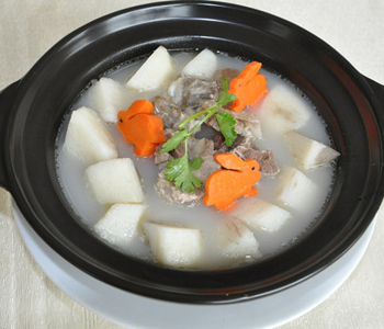 干燥的嚴(yán)冬,清熱祛火的蘿卜是最當(dāng)令的健康美味,正適合生津止渴、化痰止咳、潤肺除燥。此外,蘿卜具有消食化滯、排除脹氣、解毒消熱、通便等功效,冬天多吃蘿卜也可以預(yù)防感冒,這樣寒冷的天氣端上一碗熱氣騰騰的蘿卜豬骨湯,當(dāng)是最受歡迎的。