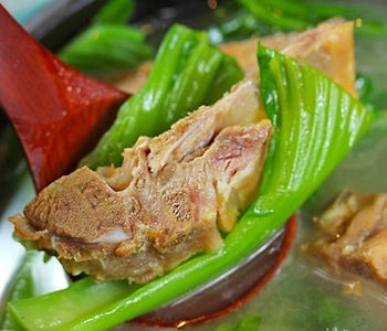 特點:咸香的豬骨配上甘涼的芥菜,肥而不膩。咸豬骨有下火的功效,芥菜能宣肺豁痰、溫中利氣。