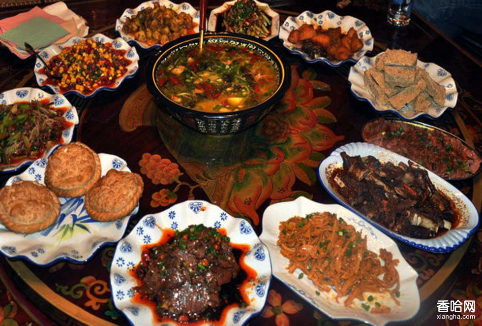現(xiàn)代在家庭和集體的慶宴上,一般也像漢式餐,擺熱菜、冷菜、湯、主食及零食。