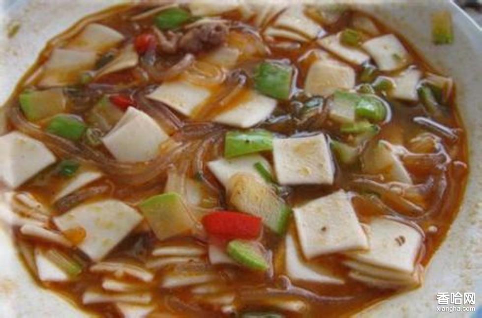 尕面片是青海人面食中最普遍而又很獨(dú)特的家常飯。據(jù)世居青海的老人們說,面片乃是長途旅行途中的快餐。青海地廣人稀,草原遼闊,交通不便,過去漢、回、藏各族之間相互來往,奔走于農(nóng)牧區(qū)之間,路程遙遠(yuǎn),中途又少旅店供食宿,跋涉一天之后,日落天黑,往往借水草一隅扎起帳房,立起三石支一口鍋,不用案板、切刀、搟面杖等炊具,只要有個碗,冷水拌面,捏成扁長條形,壓平、拉長后,再捏扁揪斷成小面片入鍋,一頓晚餐就到口了。這種長途跋涉中的快餐,有操作簡單、省時省事的特點(diǎn),充饑及時,干脆利落,兼有旅行野炊之樂。如在草原上能找到羊肉下鍋,先煮羊肉,后揪面片,這就是有名的“三石一鍋羊肉尕面片”.食畢,銅鍋搭馬背,木碗揣懷中,揚(yáng)鞭驅(qū)馬再趕前程。青海各族人民在長期生活實踐中所創(chuàng)造的食品,由旅途進(jìn)入家庭廚房,經(jīng)歷了漫長的歲月?,F(xiàn)在從城鎮(zhèn)到農(nóng)村,尕燙面片已成了最普及又享有盛名,品種繁多,滋味各殊的獨(dú)特面食了。按尕面片形狀、配料和烹任方法不同,有做工細(xì)致纖小玲城的“指甲面片”、“雀兒舌頭”;有和蘑菇混煮的“蘑菇面片”;有不帶湯而用炸醬拌吃的“燴面片”?;刈迦嗣袂逭婷媸持羞€有和牛羊肉、粉絲、辣椒混炒的“炒面片”。農(nóng)村里還有常吃的“菜瓜面片”等等。