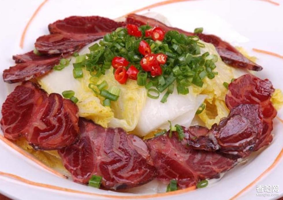 熏馬腸與熏馬肉一樣是哈薩克族喜愛(ài)的肉制品,其制作方法:馬的精華在肋骨,挑選二至三歲的膘肥馬駒宰殺后,取其馬腸,用水洗凈,將馬的肋條切成條肉,撒上鹽和作料等,再將馬肉切成碎肉和塊肉,用調(diào)料拌勻,塞進(jìn)三尺多長(zhǎng)韌性較好的馬腸內(nèi),兩頭用竹簽扎牢,熏制二十余天便成,久不變質(zhì)。主要吃法:將熏馬肉、熏馬腸清洗干凈,放入鍋中加入冷水,然后大火燒開后,改用小火慢慢熬煮大約一個(gè)小時(shí)左右,出鍋后放涼,將其切成薄片,是飲酒佐餐的佳品,吃到嘴里有一股松油和馬肉的清香,慢慢咀嚼,越嚼越香,味道極美。