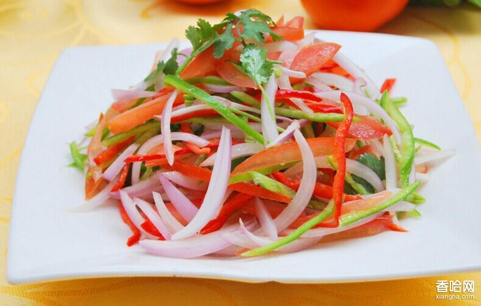 皮辣紅,也叫做老虎菜,叫它皮辣紅是因?yàn)椴牧鲜瞧ぱ孔?,就是洋蔥那個(gè)家伙,還有辣子,西紅柿,名字很形象吧,很簡(jiǎn)單的,吃起來(lái)很是爽口,特別是肉肉吃多了的時(shí)候,所以呢,新疆人一般在吃清燉羊肉的時(shí)候就要來(lái)盤老虎菜嘍。