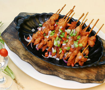 (3)半炸半煸至外層成深黃色,撈起兔肉;