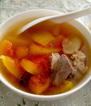 豬骨有補(bǔ)脾氣、潤腸胃、生津液、豐機(jī)體、澤皮膚、補(bǔ)中益氣、養(yǎng)血健骨的功效。木瓜素有百益果王之稱,它助消化之余還能消暑解渴、潤肺止咳。它特有的木瓜酵素能清心潤肺還可以幫助消化、治胃病,它獨(dú)有的木瓜堿具有抗腫瘤功效,對(duì)淋巴性白血病細(xì)胞具有強(qiáng)烈抗癌活性。另外還有美膚養(yǎng)顏通乳的作用。木瓜與豬骨搭配更是美味,其營養(yǎng)價(jià)值也高,是居家必備的一道良菜。下面就由我們來向大家介紹一下木瓜豬骨湯的做法吧。