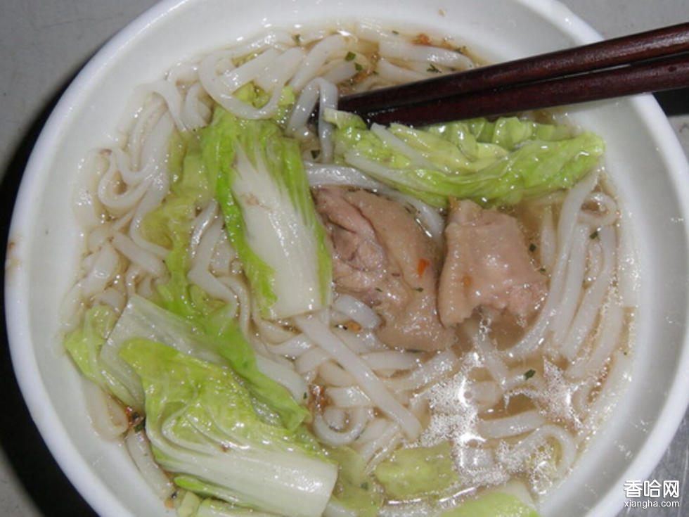 由雞湯燴制的豆粉粉片墊底,上面擺放著雜燴、丸子、雞肉塊、紅燒肉等,湯中漂浮著幾片木耳、數(shù)段金針和紅綠相映的辣椒絲蔥絲,香飄四溢。