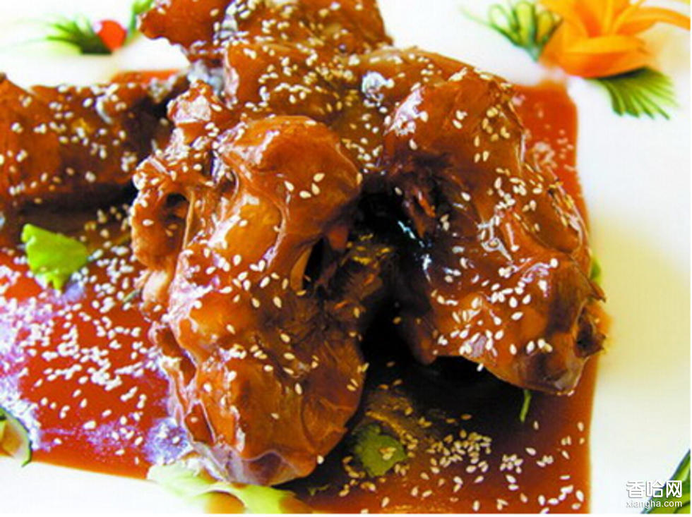 駝?wù)啤?u data-GxC7="qL3vkO">雞腿、豬蹄、火腿、雞蛋、冬菇等多種原料烹制而成的。用高麗糊做雪峰置于盤中,再把煮熟去骨的駝?wù)魄谐善湃胙┓逯g,人桌,色、香、味、形俱佳。