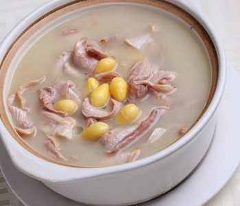 3、白果和豬肚大火同煮5分鐘后,將白果豬肚湯倒入砂鍋中燉慢火燉2個小時。
