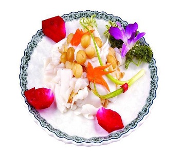 制作步驟:1. 將腌制好的鮮貝入水至五成熟,下入切好的西芹段;待鮮貝八成熟時(shí),一同撈起倒入漏勺,瀝干水分。2. 熱鍋,倒入花生油燒至五成熱,之后將夏威夷果仁倒入鍋中,拉油出香,再下入鮮貝和西芹段,一起拉油后倒入漏勺瀝凈油。3. 將鹽、味精、白糖、胡椒粉、濕淀粉、香油、上湯兌成碗汁。4. 開火,將草菇片、小蔥段、胡蘿卜花倒入鍋中余油略煸,之后倒入鮮貝、西芹段和調(diào)好的碗汁,旺火翻炒爆勻,最后淋入雞油出鍋入盤即可。