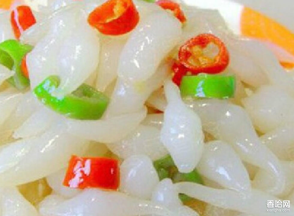魚兒粉是用精細(xì)的蠶豆淀粉制作的小吃,形似小魚,顏色有白有紅,配上調(diào)料,小菜,活吃起來清涼、潤滑,既充饑又解渴,活象一條條小魚在碗里。