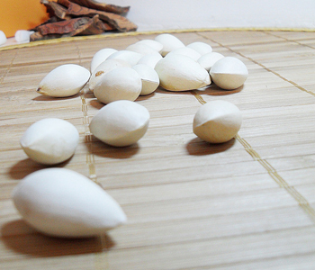 水泡法將白果全部浸泡入水中,靜置半日為宜,可以手帶乳膠手套,開始用手搓去皮。