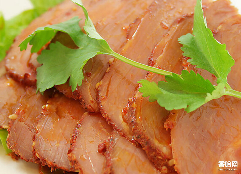 1.牛肉漂洗干凈。甘草、陳皮、草豆蔻、大料、丁香、白芷、花椒、沙姜、桂皮、肉豆蔻、蔥姜等用紗布包好。2.鹵鍋中加夠清水,放入牛肉,鹵藥包,燒沸打去浮沫,加入精鹽、醬油、冰糖、糖色等移小火鹵制4至6小時(shí),視肉質(zhì)老嫩,粑爛時(shí)撈出瀝干水分,晾涼后切成薄片裝盤。