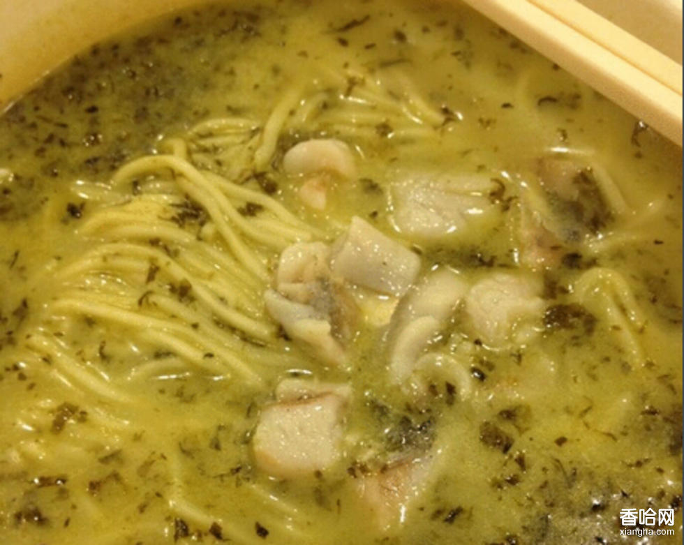白白的面搟開(kāi),切成比韭菜葉稍寬、二指長(zhǎng)的面條,先把苜蓿下在滾水里,稍煮,再下了面,一煎一點(diǎn)涼水,熟了,調(diào)鹽醋熟油辣子,湯糊糊的,菜綠綠的,面白白的,你吃一吃,濃濃的山野味、新鮮味,使你永遠(yuǎn)忘不掉它的特色。