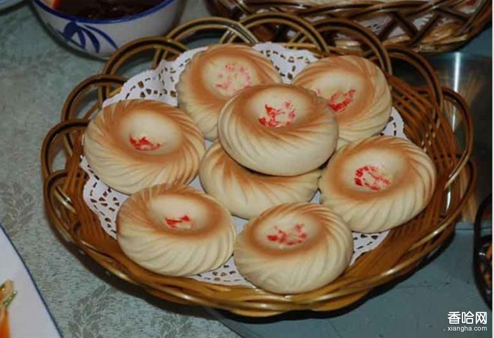 扶風(fēng)鹿糕饃是一種圓形的烙饃,又名鹿糕干糧。形似滿(mǎn)月,碗口大小,厚寸許,皮薄如紙,內(nèi)外一色,白中略帶乳黃,背面微微隆起,正面中間有一小小圓坑,坑中裝飾有一胭脂印染的朱紅小梅花鹿圖案,故名“鹿糕”。整個(gè)造型別致奇巧,宛若一件精美的藝術(shù)品。