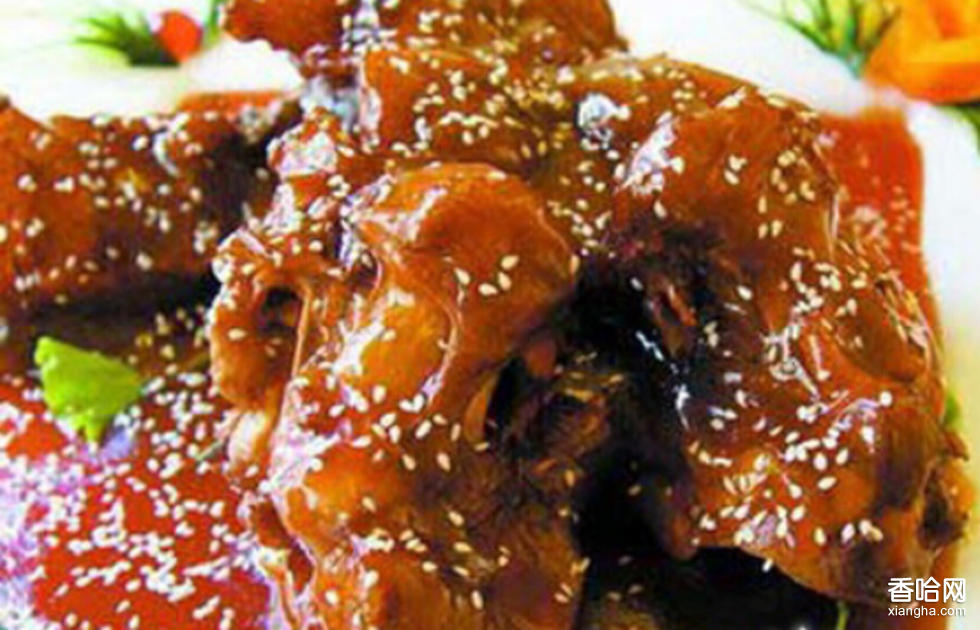 絲路駝?wù)朴置┥今務(wù)?,是一道色香味俱全的漢族名肴,屬于甘肅菜。在古代的絲綢之路上,駱駝是最主要的交通工具,它能在戈壁沙漠中長(zhǎng)途跋涉,主要憑借那四只堅(jiān)實(shí)的駝?wù)?。由于駝?wù)迫渴墙?,其營(yíng)養(yǎng)價(jià)值很高。但駱駝壽命長(zhǎng),一般很少宰殺,所以駝?wù)坪茈y尋覓,它與熊掌一樣名貴。