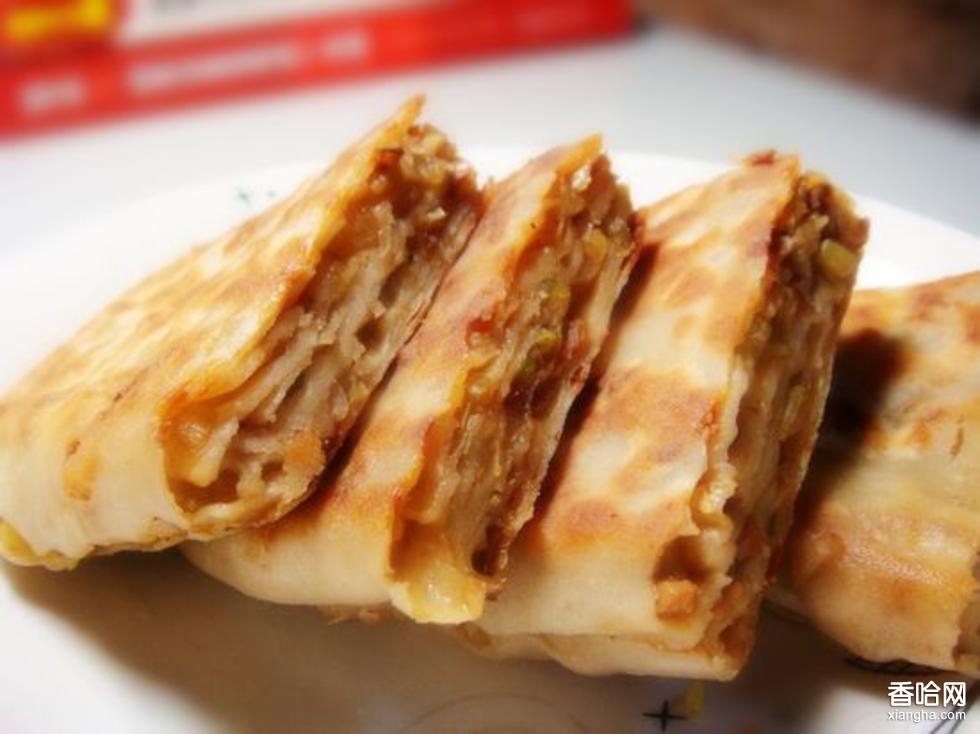 制做時(shí),將牛肉剁成細(xì)泥,切碎蔥,加以適量食鹽、味精、豆汁油、花椒和姜末、草果等。用溫純堿水和面,反復(fù)揉搓后,抹上清油,從右端扯開(kāi),越薄越好;然后從右端開(kāi)始放入肉餡,從右向左,邊扯面邊卷曲,并用手壓成圓餅,即可在平頂鍋內(nèi)烙烤。燒上油,烙約15分鐘,即可上桌食用,味形交輝,堪稱(chēng)佳絕。