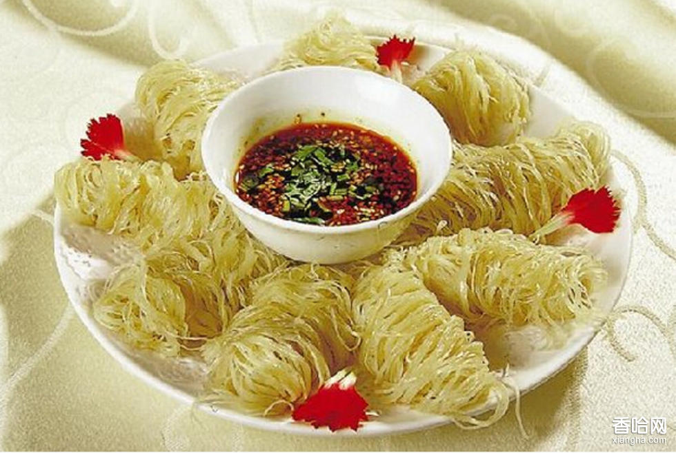 特點(diǎn):因外形縷縷金絲盤繞,層層塔樓相疊而得名。味松軟綿潤(rùn)、層多絲細(xì)、油而不膩。主要原料:上等面粉、豬板油。簡(jiǎn)要介紹:金線油塔是陜西風(fēng)味小吃,因外形縷縷金絲盤繞,層層塔樓相疊而得名。該小吃首創(chuàng)于唐代。選用面粉、豬板油等原料,將烙制改為蒸制而成。