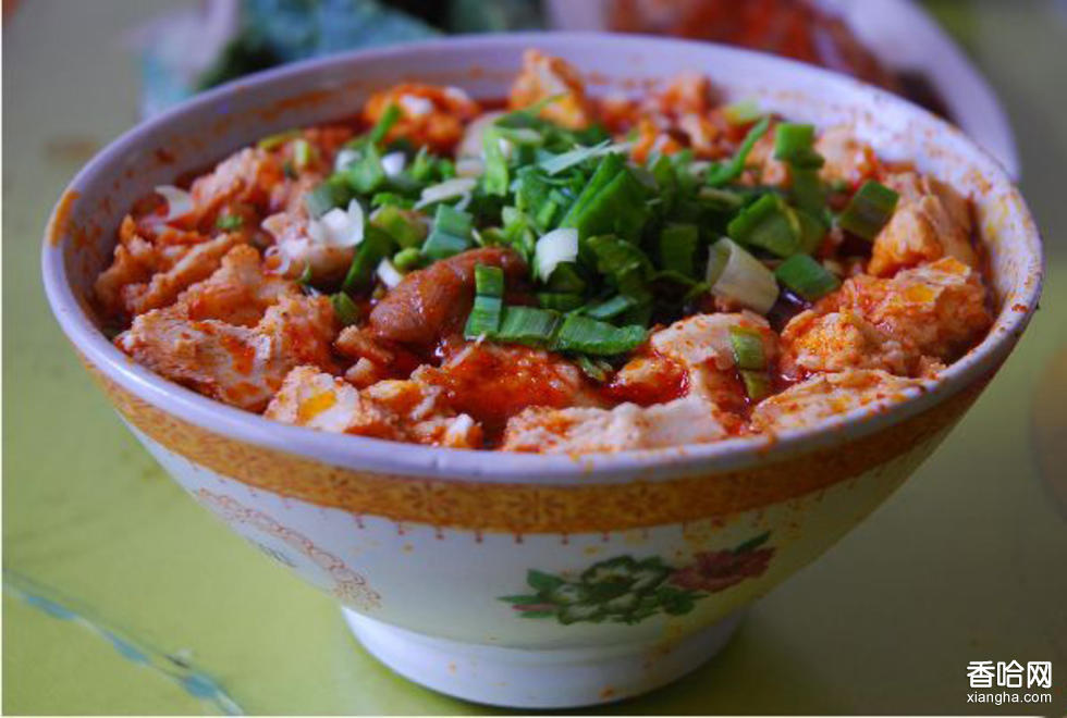辣子疙瘩,是戶縣的一種小吃,看著油但是吃起來(lái)不膩,色香味俱全。這是一個(gè)很特別的泡饃,不像羊肉泡饃的饃都是熟的,羊肉泡饃的饃都是半熟的,他用的是鍋盔饃。辣子疙瘩的色澤鮮艷、疙瘩鮮香、湯酸辣。十分誘人,是一種非常辣的小吃。