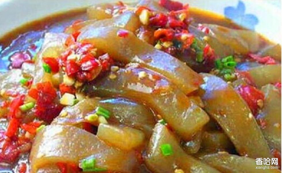 蕨粉皮子是漢陰人款待賓客的上等小吃,無論大小宴席,即便金樽美酒、山海珍饈,還少不了一碗蕨粉皮子上在席桌的中央,而且是最受歡迎最先吃光的萊肴。那“少小離家老大回”的異鄉(xiāng)游子,一回到漢陰,第一頓飯食就要吃那蕨粉皮子。即便是病人膏肓、九死一生、不進(jìn)飯食的垂危病人,也還想吃一點(diǎn)蕨粉皮子,以開口胃,甚至死而無憾。不過,現(xiàn)在因蕨粉來源奇缺,多以苕粉、洋芋粉代替,其味道不如蕨粉,風(fēng)味大減。真正的蕨粉皮子,已不多見了。