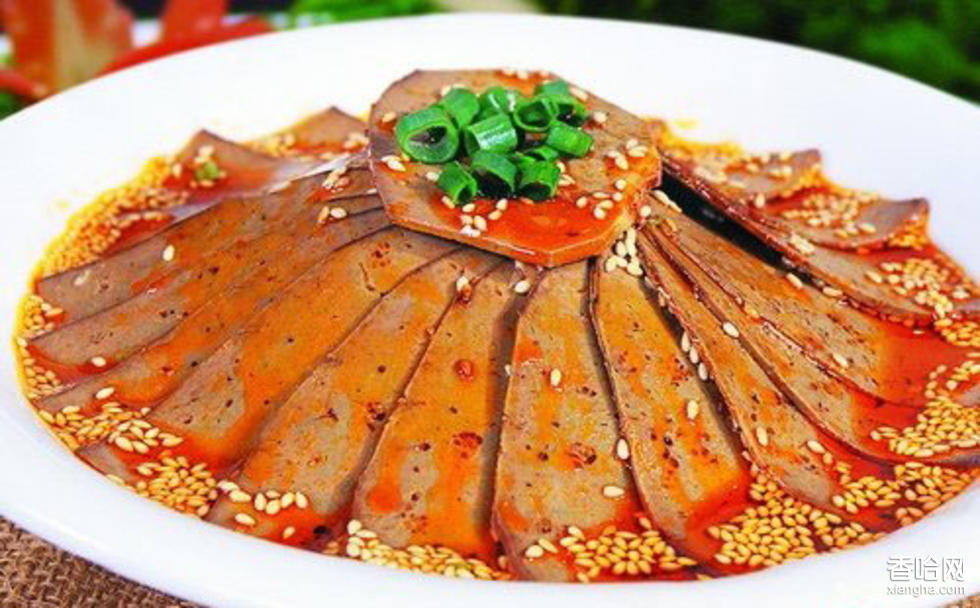 滇西北各民族(白族,彝族,納西族等)常采用的豬肝做法。而大理鶴慶人則將新鮮豬肝用插入的麥竿兒吹脹到最大,然后撤掉麥竿兒,將脹大的豬肝用蒸籠蒸熟,放涼,切片,拌入芫荽、醬油、醋、辣椒、味精和鹽后即成,其味極爽口并且沒有通常豬肝特有的難吃的味道。切片略帶甜味(肝糖元水解所致),切面有無數(shù)小氣孔,像海綿一樣吸水,非常好吃。