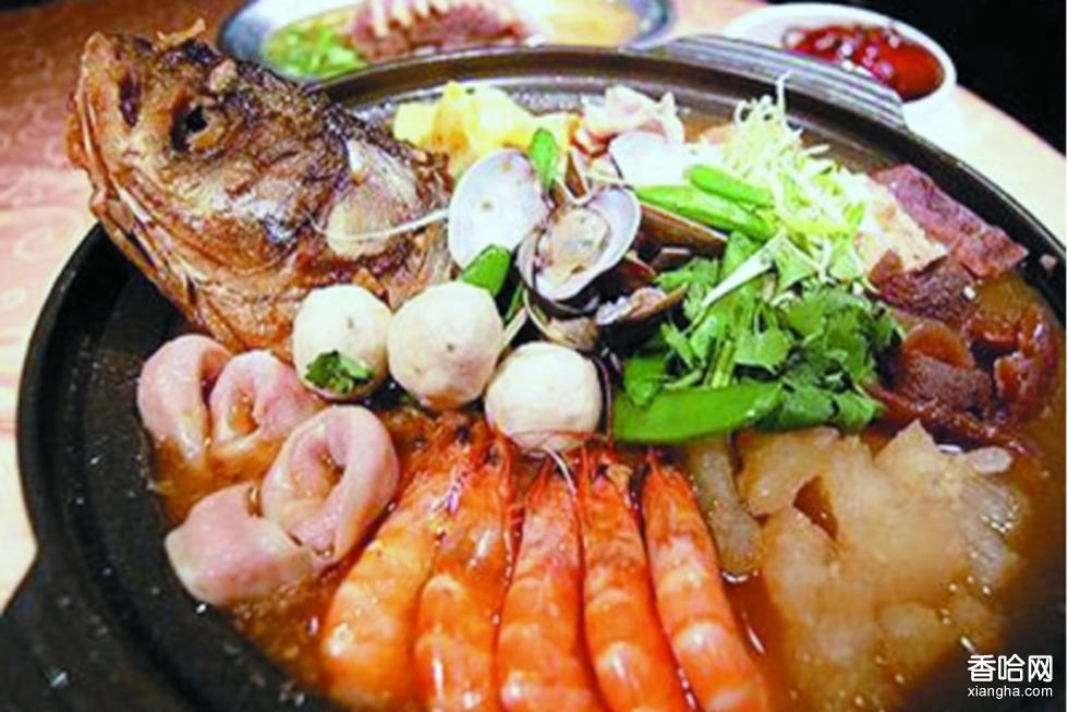 制作方法:1.活弓魚去鱗、鰓、內(nèi)臟,洗凈后斬為3段,用精鹽7克抹遍魚身腌上。板豆腐切成三厘米見方的小塊,放在沸水中燙一遍瀝去水分。云腿、海參、魷魚、紅胡蘿卜、白菜心分別切為片,蔥切為末,姜切為絲。2.取能盛兩公斤的空砂鍋一只,置旺火上燒,燒的熱度越高越好。3.炒鍋內(nèi)注入上湯,先放入腌過的弓魚煮熟,再放入云腿片、海參片、魷魚片、蹄筋、冬菇、玉蘭片、金鉤、板豆腐、紅胡蘿卜片、菜心、姜絲、蔥末稍煮,撇去浮沫,加入精鹽13克、胡椒面、味精調(diào)好味,淋上芝麻油。燒熱的砂鍋擺在墊碟上,將炒鍋內(nèi)煮好的弓魚倒入砂鍋。由于砂鍋的熱度較高,上桌時仍然沸騰。