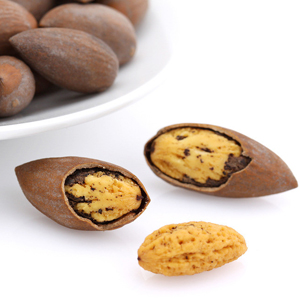 殼薄而脆,也特別好剝。香榧自然成熟后,果肉和果殼是慢慢分離的,自然特別容易剝開(kāi)了的。而成熟不夠的香榧?xì)ず腿膺B在一起,很難剝開(kāi)的。