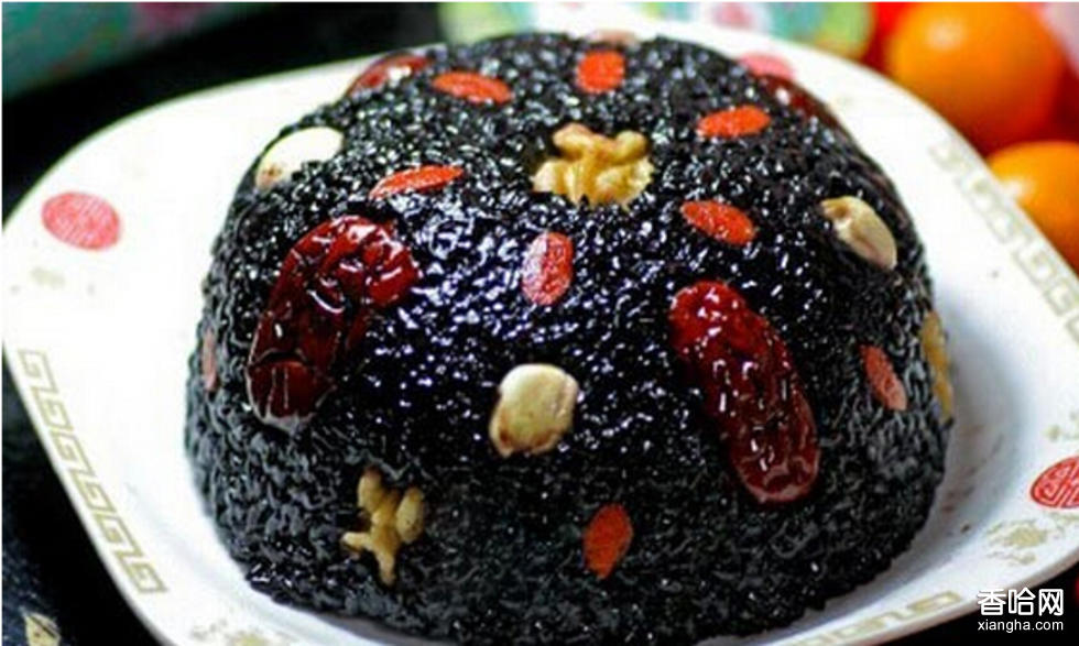 紫米八寶飯,紫米也稱“紫糯米”、“接骨糯”。僅產(chǎn)于云南思茅和西雙版納地區(qū)。因顆粒長(zhǎng)、色紫紅,做成飯粥后色更鮮艷,故名紫米八寶飯。紫米有特殊芳香,色紫紅,制成八寶飯后軟糯適口,油而不膩,加上各種調(diào)輔料形成難得的復(fù)合美味。八寶飯可當(dāng)民間小吃,也可作為甜菜設(shè)計(jì)在各式筵席中。