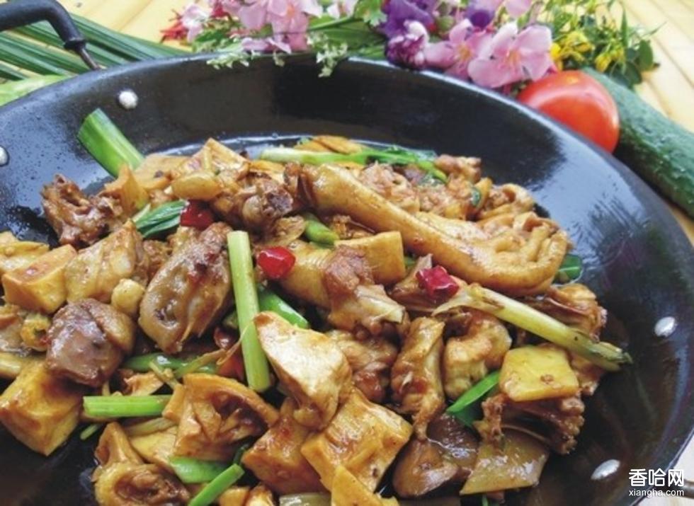 該菜系選用德昌優(yōu)質(zhì)雜交雞,配青筍、青椒、大蒜、泡姜等,先將雞放入溫油中炸熟,再加豆瓣、姜、料灑、花椒、辣椒面炒香,摻入鮮湯,加蓋密封不使其走氣,用微火燜杷。此菜色澤紅亮,雞肉杷嫩,咸鮮微辣、價(jià)廉物美。