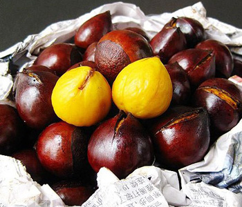 2、如果是在街邊買的糖炒板栗,不要以為果肉越金黃越好,因?yàn)榻瘘S色果肉的有可能是經(jīng)過化學(xué)處理。