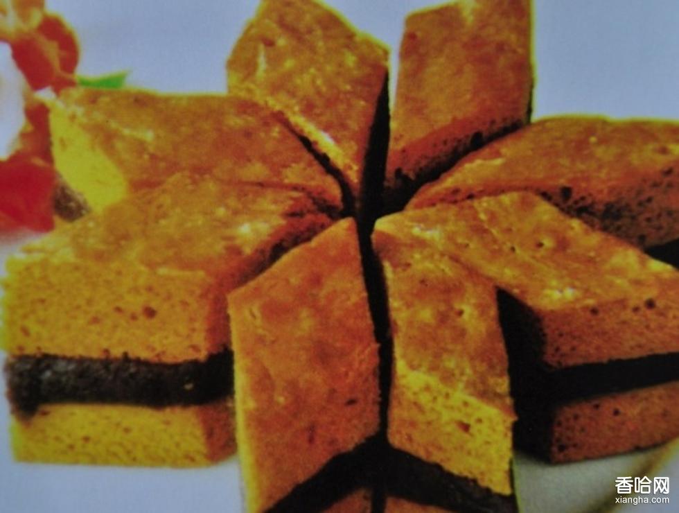 (2)蒸寵底上鋪白紗布,將蕎面糊倒2/3入籠,上火蒸20分鐘,抬下后將豆沙鋪在上面,再將余下的蕎面糊倒上,上火蒸30分鐘,并在表層用竹筷插些氣孔加速其成熟。熟后將芝麻撒在表面上,晾涼后切成棱形塊即成。