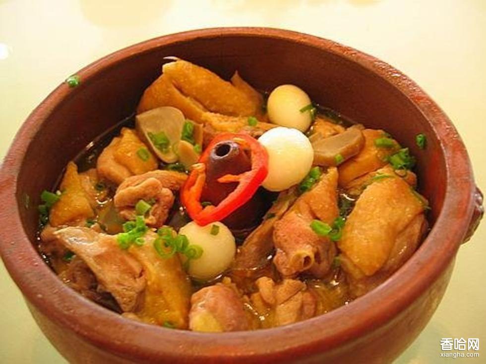 汽鍋雞是云南獨(dú)有的高級(jí)風(fēng)味菜,它以烹制特殊,雞肉滋嫩、湯汁鮮美、原汁原味,芳香撲鼻。汽鍋雞是云南獨(dú)有的高級(jí)風(fēng)味菜,它的烹制方法特殊,雞肉細(xì)嫩、湯汁鮮美、原汁原味、富于營(yíng)養(yǎng),在國(guó)內(nèi)外均享盛譽(yù)。早在清代乾隆年間,汽鍋雞就在滇南地區(qū)民間流傳,距今已有200來(lái)年。滇南地區(qū)建水縣所產(chǎn)陶器歷史悠久,式樣古樸、特殊。當(dāng)?shù)厝藯顬r利用建水陶,獨(dú)出心裁地研制出特殊的中心有嘴的蒸鍋,名日:“汽鍋”。烹任時(shí)在汽鍋下放一盛滿水的湯鍋,然后把雞塊放人汽鍋內(nèi),純由蒸汽將雞蒸熟。此菜湯汁為蒸汽凝成,保持了原汁原味,肉嫩香,湯清鮮,深得食者贊譽(yù)。此后汽鍋雞名傳中外,胎炙人口。后來(lái)人們又在汽鍋雞中配加云南特產(chǎn)的名貴藥材“三七”、“蟲(chóng)草”、“天麻”等,使雞湯更加味美鮮甜,既增加了營(yíng)養(yǎng)和醫(yī)療作用,又別具風(fēng)味,發(fā)揮了汽鍋雞營(yíng)養(yǎng)豐富,滋補(bǔ)強(qiáng)身的優(yōu)點(diǎn)。此后,三七汽鍋雞、蟲(chóng)草汽鍋雞、天麻汽鍋雞漸成為云南高級(jí)獨(dú)特的風(fēng)味滋補(bǔ)名菜。