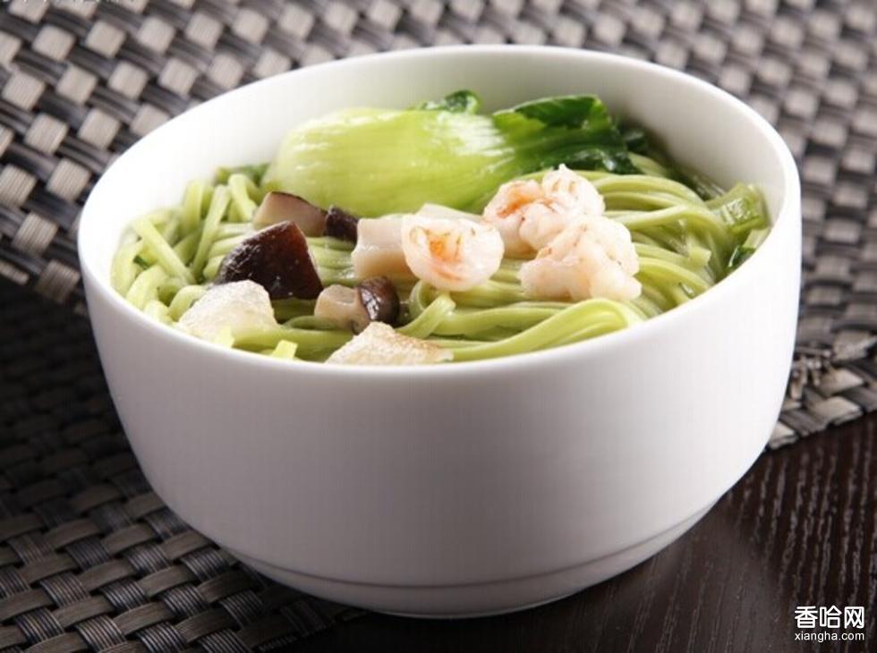 四川特產(chǎn)—青菠面,流行于川西地區(qū)風(fēng)味小吃。采用上等面粉加菠菜汁和雞蛋清調(diào)成極硬的淺綠色水調(diào)面團(tuán),揉熟后用手工搟成面條,對疊多次,切成柳葉形或細(xì)面條。青菠面色澤碧綠,面條筋而韌,綿而滑,湯鮮味美,為四川面食中的上品。