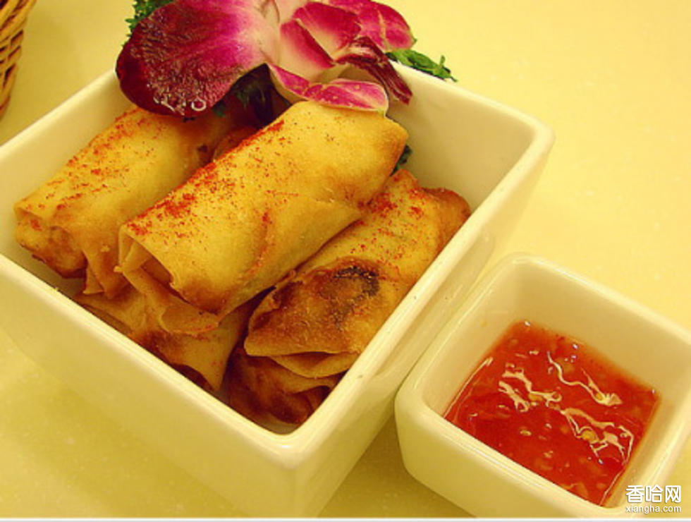 川味炸春卷,炸點(diǎn),特點(diǎn):色澤金黃,皮酥脆,餡鮮嫩。烹制法:炸。
