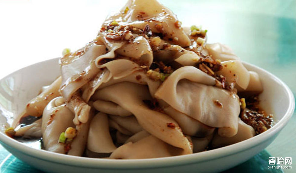 吃時切韭菜葉,開水煮熟,配紅油、白醬油、醋、味精、香油、花椒面、白糖等調(diào)料即成。