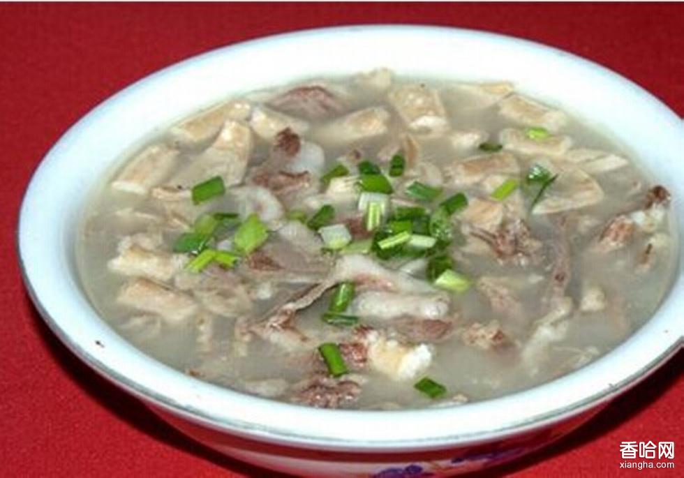 簡陽羊肉湯,肉質(zhì)細(xì)嫩、肥而不膩、溫而不火,尤其是那奶一般白的湯,其味鮮香濃烈、余味悠長,是任何一道菜一種湯都難以匹敵的。特別是冬天的早晨,一家人就著一盆羊肉湯,營養(yǎng)有了,熱能有了,連呼氣也久久地有了羊肉味兒。若是懶得下廚,或者中途來了客人,或是拿不準(zhǔn)吃什么的時候,來一盆羊肉湯,菜有了,湯也有了,十分經(jīng)濟便當(dāng),也不掉面子。對簡陽人來說,羊肉湯是一種極好的便餐,也是一種文化。羊肉入鍋爆炒前先放入兩條鯽魚油炸,那魚羊一鍋,活脫脫是鍋里煮著一個“鮮”字了。不少人說,簡陽首推玉成橋羊肉湯為上品。其實在簡陽所有場鎮(zhèn)上,都有自己的羊肉湯名家,做得好的羊肉湯,大家彼此彼此,難分高低。可以毫不夸張地說,簡陽的“羊肉湯名家”遍及各個角落。