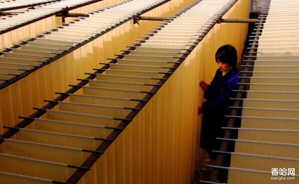 “離夫”——小麥磨成粉離開了麥麩;“打扮搽油”——合面時在案板上打扮(拌)搓揉,合揉面團需不時抹清油;“光棍”——面條成型后,兩端各用一根小棍挑著,上高架涼曬脫水、繼續(xù)抻長;“擺動風(fēng)流”——一根小棍插在高架上,另一根垂于下面,面條隨風(fēng)搖擺,婀娜多姿;“天長地久”——高架上的面條一端高聳云天,另一端下垂地面;“刀切兩頭”——面條不需幾日涼干后,切掉兩頭靠小棍處的“面頭子”,包裝為一把把的成品。這些“下里巴人”們,倒也不乏羅曼蒂克,把枯燥的勞作,演繹成了“做面詠嘆調(diào)”。真?zhèn)€是“文藝作品源于生活”??!