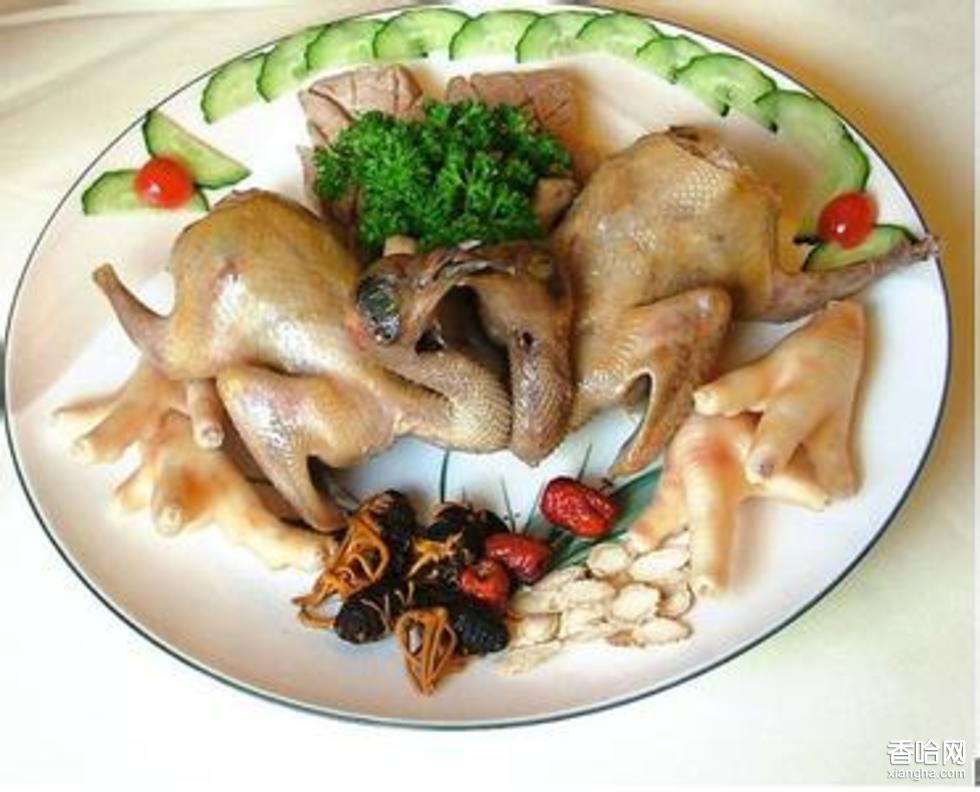 制法:將土雞宰殺燙毛去內(nèi)臟,入冷水鍋中煮沸,打去浮沫改用微火繼續(xù)煮至半熟,撈出用剪刀剪成八塊,雞頭、雞尾、兩翅、兩腿、兩胸。入鍋再煮兩分鐘關(guān)火燜10分鐘,取出分盤裝上桌即可。