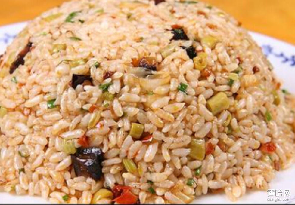 冷飯 1碗、玉米 2湯匙、青豆2湯匙、折耳根10根左右(洗凈摘成2cm左右的小段)、熟火腿或熟臘肉 3片(切成丁)、熟豆米 2湯匙、酸蘿卜2湯匙(切成丁)、酸豇豆2湯匙(切成顆粒)、香蔥末 1湯匙、泡紅椒3個(切成小段)、油 1湯匙、鹽 1茶匙、味精 1/2茶匙、做法:1、準備各種原料,四季豆米煮熟(加少量食用堿)。2、炒鍋燒熱,下油炒香泡紅椒,然后放入青豆、玉米,翻炒至7成熟,依次加入火腿、折耳根、酸蘿卜、酸豇豆, 煸炒至出熟色。3、把米飯倒入鍋中,用炒勺打散米粒,均勻翻炒,加入熟豆米、香蔥末,待起鍋時調(diào)入鹽和味精翻炒均勻即可。小貼士:1、用隔夜米飯來炒飯粒比較容易炒開,如果米飯成團了,在炒的過程中加入少量水可以幫助米飯快速的散開2、這碗炒飯的不同之處就是因為了臘肉和折葉根的加入,所以這兩樣材料一定不能少3、有了臘肉的醇香和折葉要特殊的香味,我個人覺得不用放入太多的調(diào)味品4、折葉根炒制時間不宜太長,否則會減淡綜本身的香味