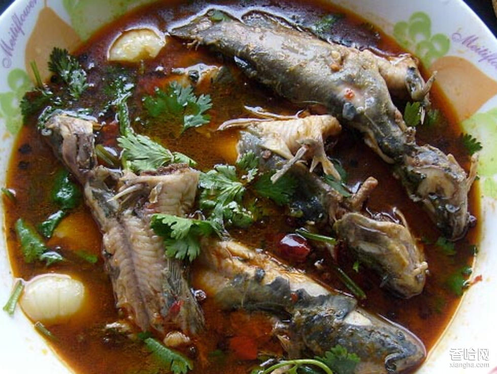 墨沖角角魚,在都勻地區(qū)以量多味美著名。取用本地水煮的魚味道特別香,再加上鹽蘸制法細(xì)膩和吃法講究,堪稱一絕。角角魚鱗呈烏青色,胸鰭邊緣硬,長大后變成角,故名角角魚。它生活在清澈見底的水中,最長25厘米,最大重半斤左右。小巧玲瓏,放到魚缸里可玩賞。角角魚,肉質(zhì)鮮美細(xì)嫩厚實,煮熟的魚分離下來的肉不含刺。