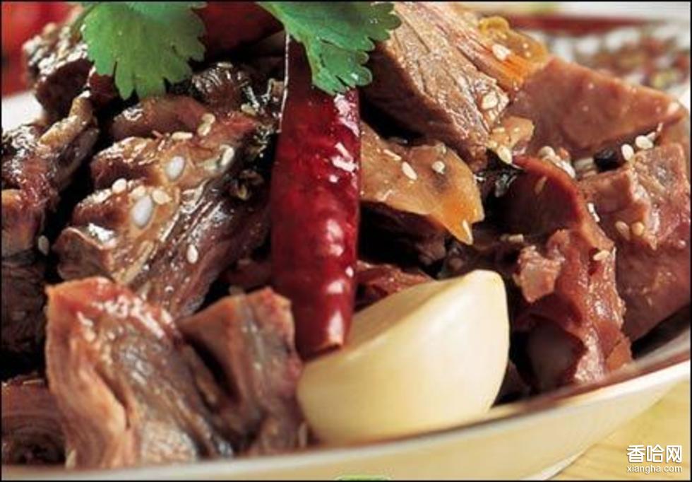 烹制方法:不用剝皮,先放在熱水內(nèi)煮,再拔毛、去掉狗頭和內(nèi)臟,然后放入砂鍋,裝滿水后用文火燉。然后入鍋內(nèi)放姜、煳椒、鹽少許等入鍋燉熟,撈出切片。為防止跑味中途不能開鍋。特制蘸水(盤江生意人在佐料方面有新的配制):糊辣椒面、黃豆、蔥花、蒜沫、腐乳等上桌后將狗肉切片放入密制的狗肉湯內(nèi)小火精燉,少頃即可夾出蘸特制蘸水后食用。色味俱佳,香辣爽口!