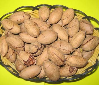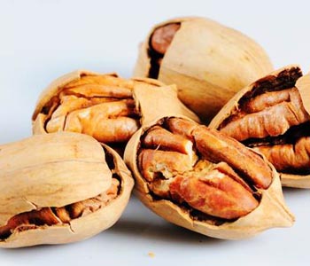 碧根果富含多種營養(yǎng)物質(zhì),如脂肪、蛋白質(zhì)、胡蘿卜素、粗纖維、鈣、磷、鐵、鋅、錳、維生素C、維生素B、維生素E等等。碧根果所含脂肪的主要成分為亞油酸甘油脂,食用后不但不會使人體的膽固醇升高,還能減少腸道對膽固醇的吸收。還有,碧根果含有的鋅、錳元素,是人體腦垂體的重要成分,經(jīng)常食用碧根果,意味著大腦的營養(yǎng)得到補(bǔ)充,從而起到健腦益智的作用。碧根果還富含維生素E,經(jīng)常食用有潤肌膚、烏須發(fā)的作用,可以令皮膚滋潤光滑,富于彈性。