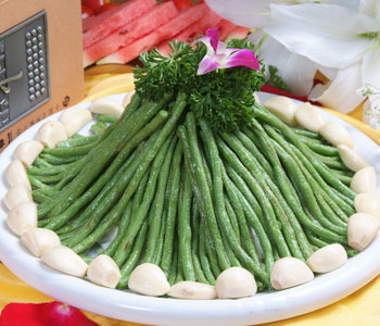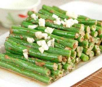 材料:豇豆、紅辣椒、蒜蓉、耗油、雞精、鹽