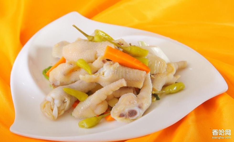 制法:1、精選個(gè)大鳳爪,洗凈從中間剁開(整個(gè)也行),入沸水鍋中煮10-15分鐘后撈出冷卻。2、蒜剁碎,山海椒剁碎,備用。3、開水盛在寬口容器中,倒入剁碎的蒜和山海椒,冷卻。4、取老壇泡菜水(約與開水等量),倒入盛開水容器中,與冷開水充分混合。5、泡菜水中加入花椒、少量胡椒粉,整個(gè)的山海椒、山海椒水及味精、雞精少許。6、將煮好的鳳爪倒入冷卻后的泡菜水中,浸泡30分鐘。(一般可以置更長(zhǎng)時(shí)間味道更好)7、裝盤。[備注]蒜和山海椒在開水未冷時(shí)倒入更能逼出其香味。